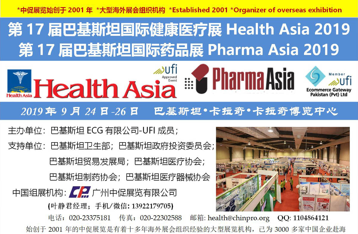 同期招展: 2019年9月24日-26日 | 巴基斯坦•卡拉奇 | 第17届巴基斯坦国际健康医疗展Health Asia 2019