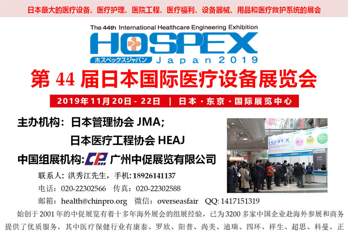 同期招展: 2019年11月20日-22日 | 日本•东京 | 第44届日本国际医疗设备展览会HOSPEX Japan